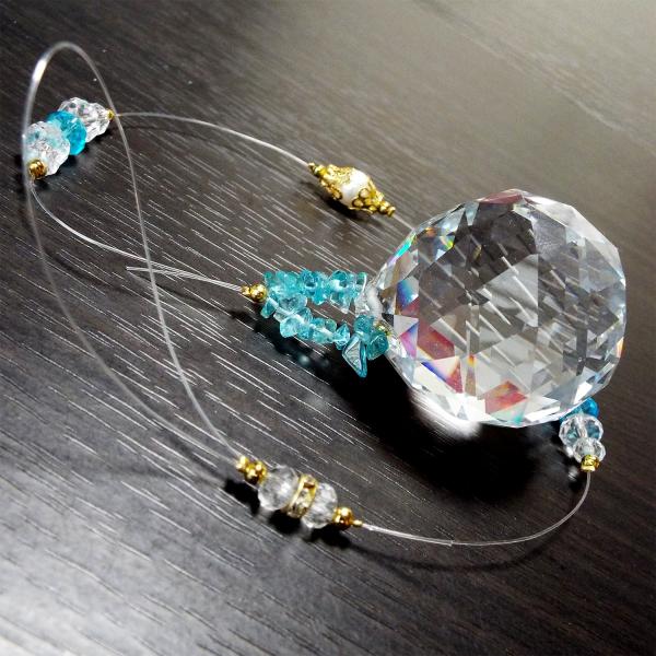 トップ 約40mm 天然石 ブルーグリーンアパタイト ヒーリング サンキャッチャー パワーストーン アクセサリー インテリア