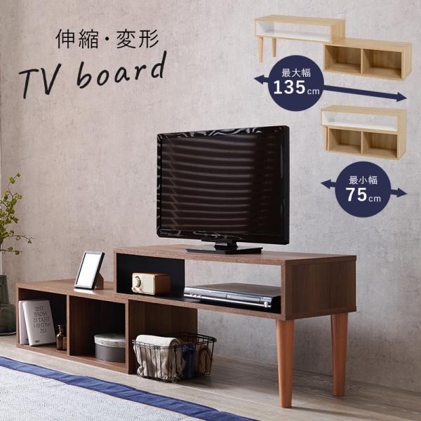 テレビ台 ローボード おしゃれ テレビボード 収納 伸縮テレビ台 伸縮テレビボード 伸縮 テレビ TV台 コーナー TVボード ロータイプ 白 32型 幅75 幅135