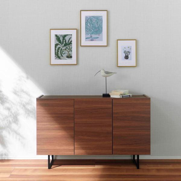 サイドボード 板戸 キャビネット リアルウォルナット 幅120cm 奥行33cm 高さ75cm BLD-121T シンプル スリム設計 可動棚 飾り棚 ルンバブル 国産 完成品