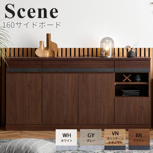 モーブル Scene シーン 160 サイドボード オーク材 リビング 収納 キャビネット 幅160 奥行30 高さ80 可動棚 飾り棚 日本製 国産 完成品