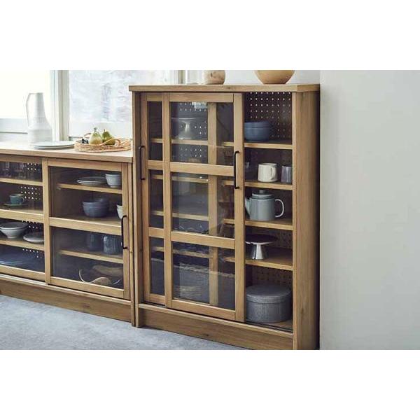 食器棚 キッチンラック 収納 ガラス 可動棚 nora ノラ Herme エルメ キャビネット 幅90 間仕切り キッチン収納 リビング収納 引き戸 壁面収納 関家具