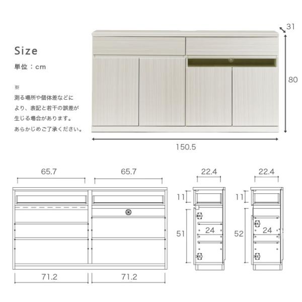 サイドボード 幅150cm 奥行30 キャビネット リビングボード カウンター下収納 完成品 キッチンカウンター TVボード シンプル (選べる開梱設置サービス)