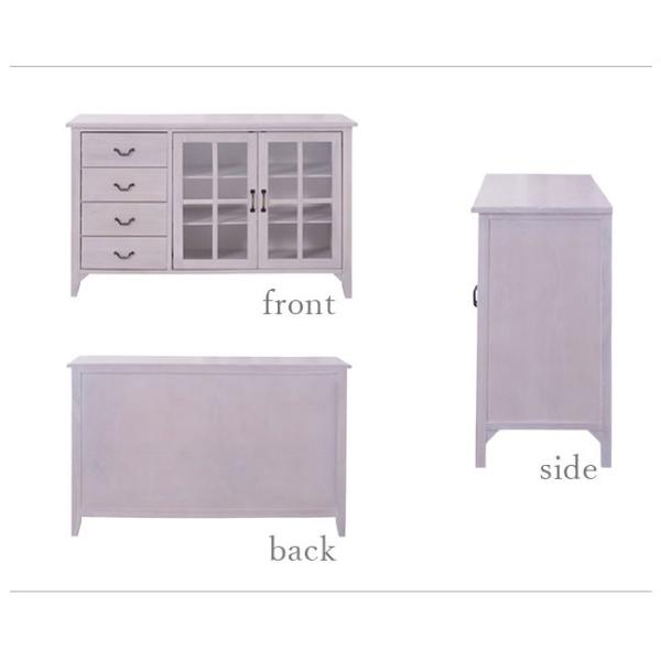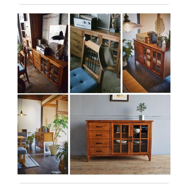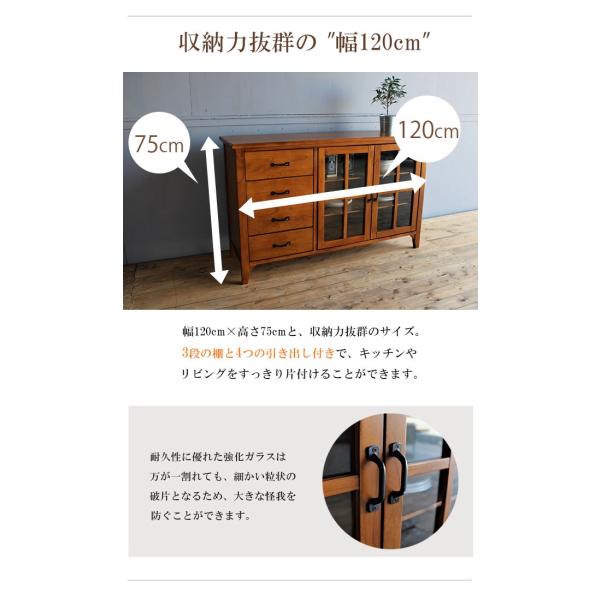 キャビネット 幅120 食器棚 サイドチェスト リビング収納 木目 ブラウン ホワイト レトロ 強化ガラス 脚付き アウトレット価格