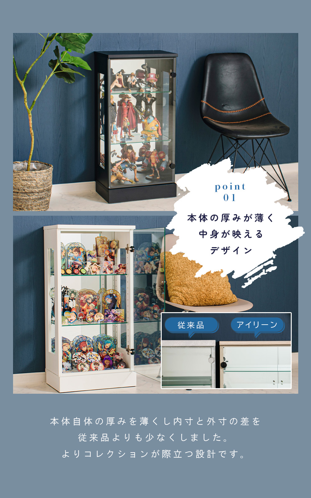 コレクションケース LED ダウンライト コレクションラック ガラスケース 幅42 40 コレクションボード ショーケース ディスプレイ ロータイプ アイリーン 42 爆買