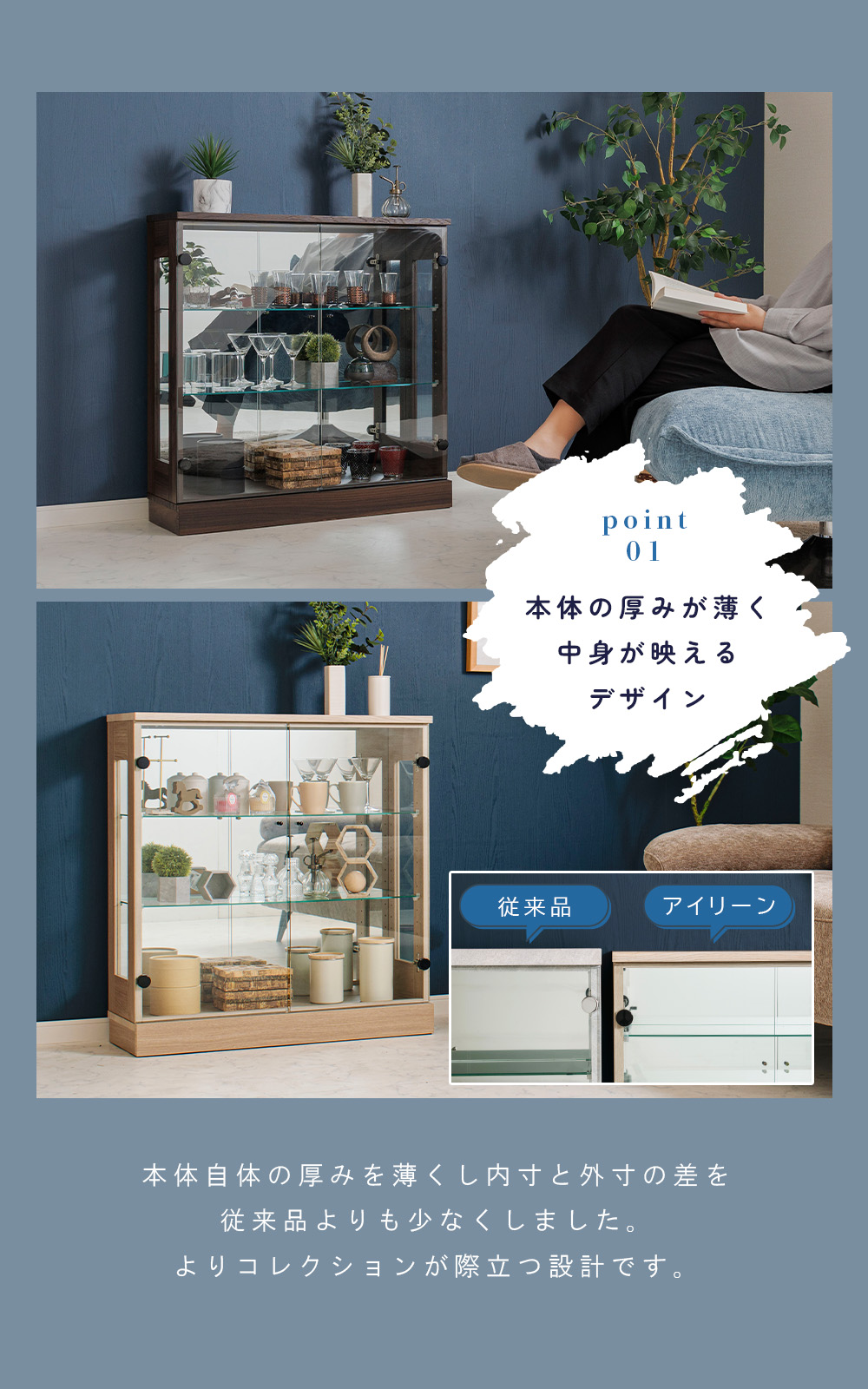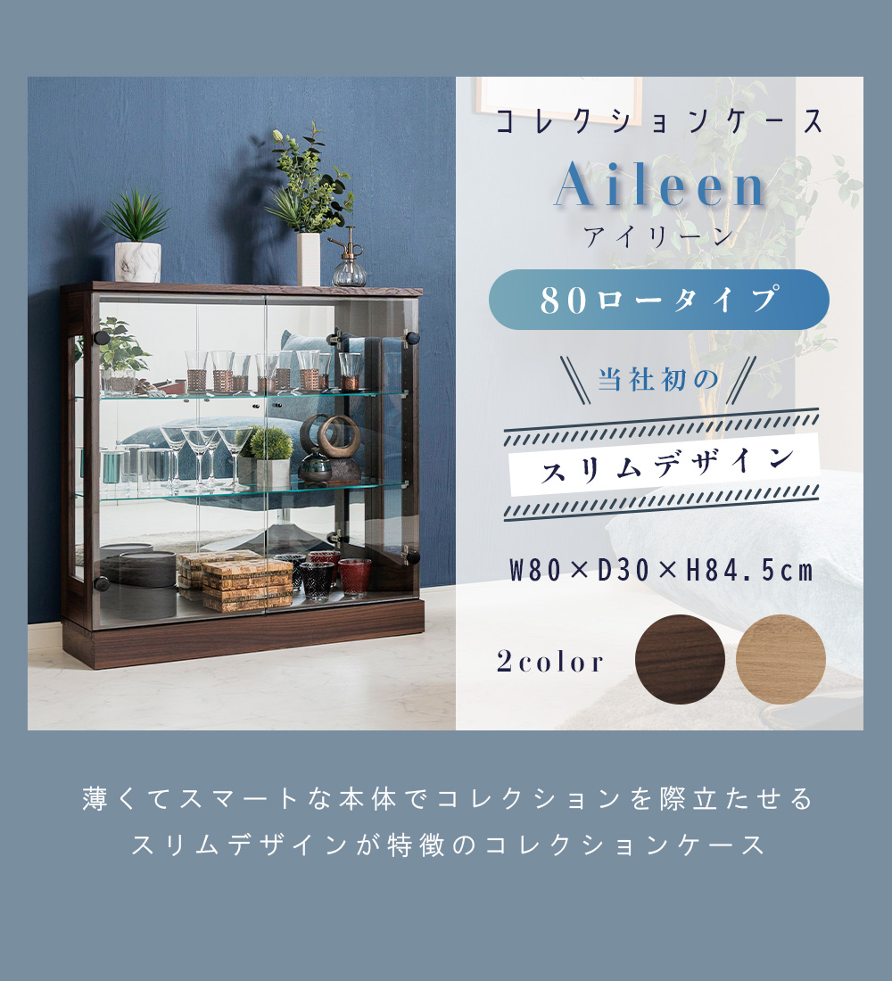アウトレット コレクションケース LED ダウンライト コレクションラック ガラスケース 幅80 コレクションボード ディスプレイ ロータイプ アイリーン 80L