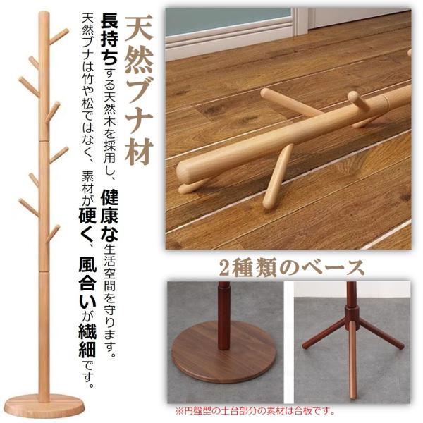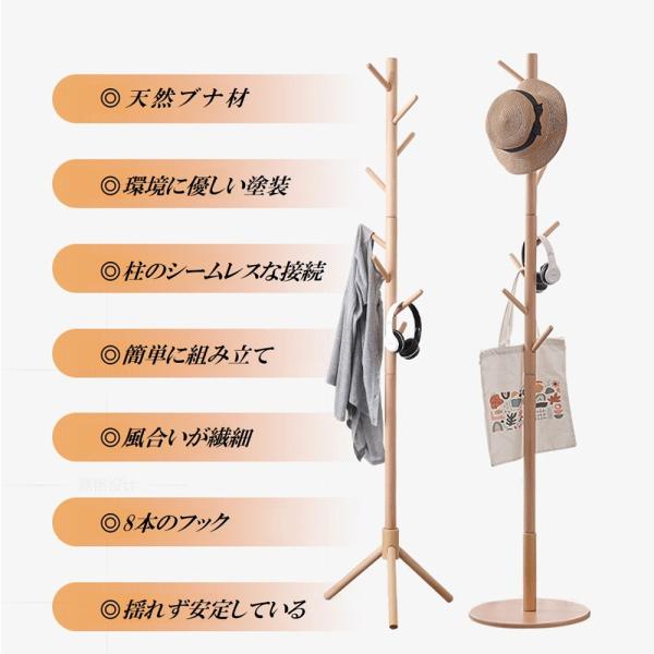 木製 ポールハンガー ブナ コートハンガー 丈夫 ハンガーラック スリム 木製 コート掛け かばん掛け 帽子掛けスタンド 組立て簡単 省スペース 新生活 ギフト