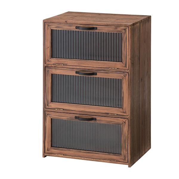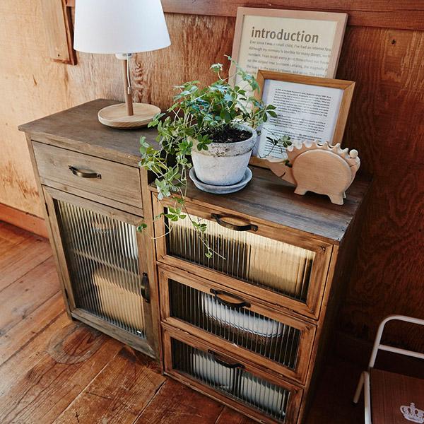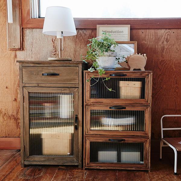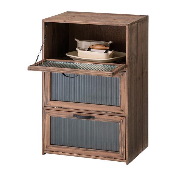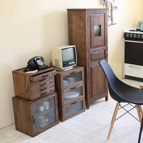 フラップチェスト 木製 おしゃれ 収納 ガラス扉 杉 アンティーク 古道具風