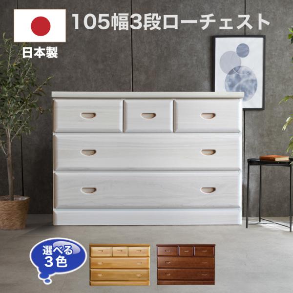 タンス たんす チェスト 木製 ローチェスト 完成品 桐チェスト 幅105cm 3段 リビング収納 日本製 国産