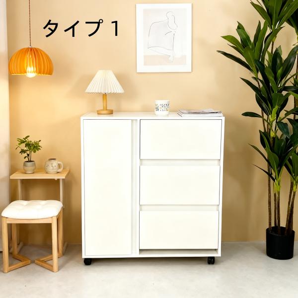 キャビネット 木製 おしゃれ 北欧 幅80 チェスト キャスター付き 3段 収納棚 タンス 大容量 押入れ収納 棚 扉付き スリム テレビ台 リビング 奥行40 ホワイト