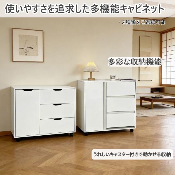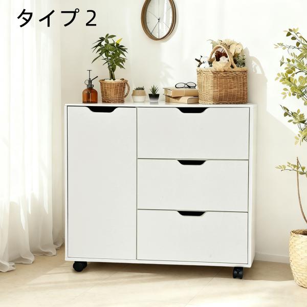 キャビネット 木製 おしゃれ 北欧 幅80 チェスト キャスター付き 3段 収納棚 タンス 大容量 押入れ収納 棚 扉付き スリム テレビ台 リビング 奥行40 ホワイト