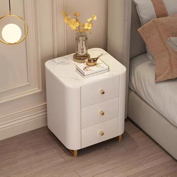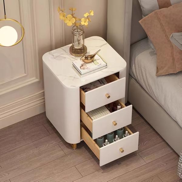 サイドテーブル チェスト3段引き出し {自社製品} 収納家具 レザー調 TST02大容量 ホワイト系グレー系ピンク 天然木造引き出し ドレッサーチェスト