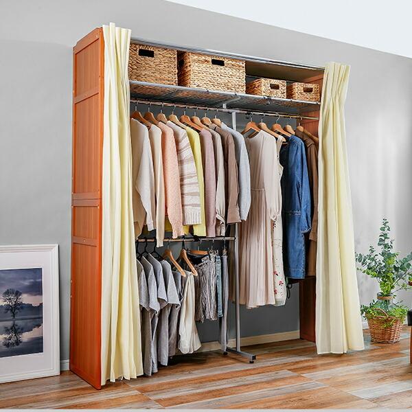 伸縮式クローゼット 棚付きタイプ ハンガーラック カバー付き 収納 奥行55cm 衣類収納 ワードローブ カーテン チェスト 洋服 衣類収納 おしゃれ 大容量 壁面収納