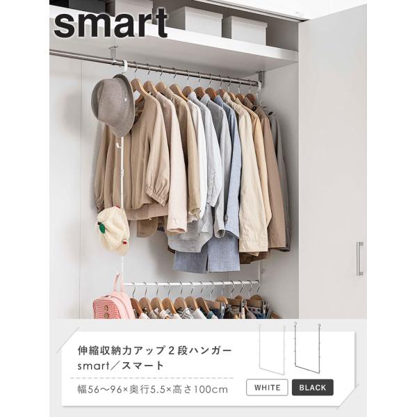 伸縮収納力アップ2段ハンガー smart スマート 山崎実業 ハンガーラック ハンガーパイプ 後付け 洋服掛け クローゼットハンガー 5678 5679 爆買