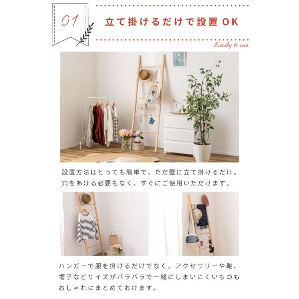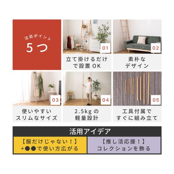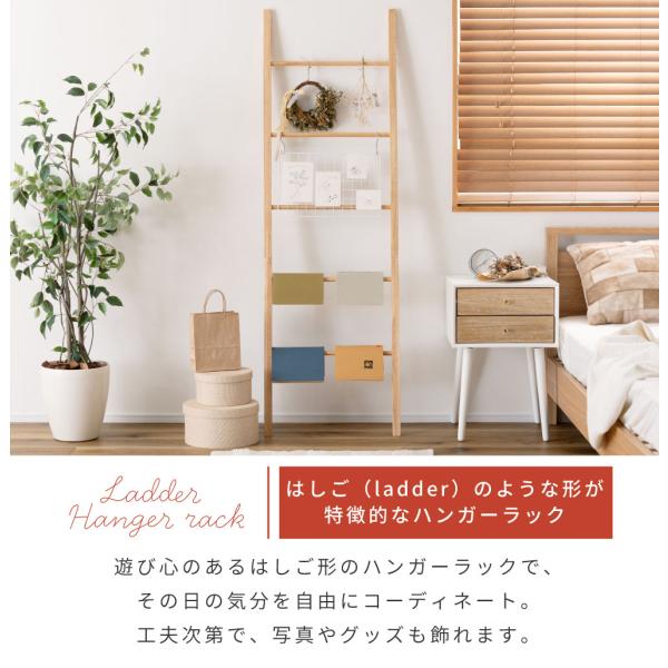 ハンガーラック おしゃれ はしご 梯子 ラダー ナチュラル 木製 北欧 はしご形 スリム シンプル 軽量 アクセサリー収納 掃除道具 推し活 推し事 高さ170cm