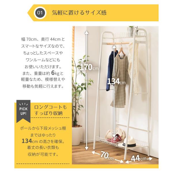 ハンガーラック スリム おしゃれ 幅70 コートハンガー スチール 洋服ラック 収納 シンプル モダン 木製 天然木 黒 白 ランドセル ランドセルラック