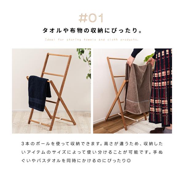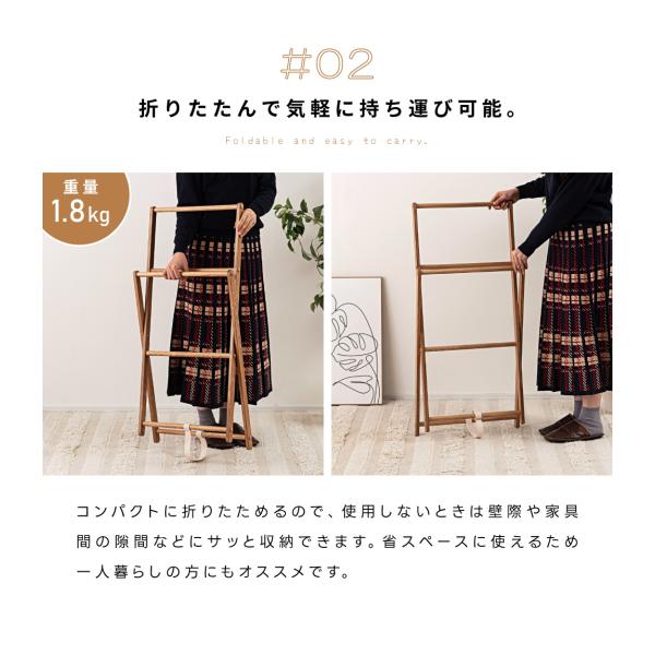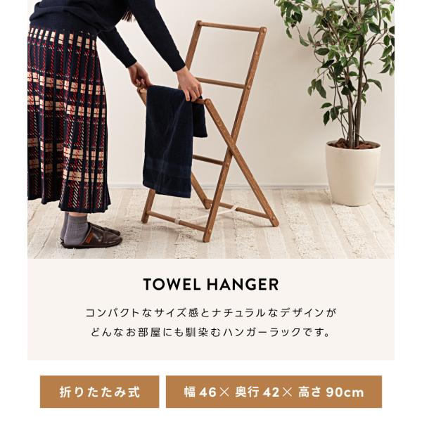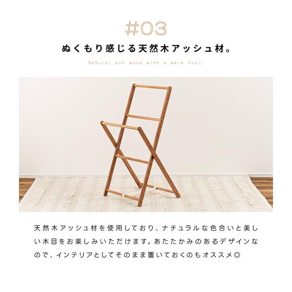ハンガーラック スリム タオルハンガー 2段 木製 折りたたみ アッシュ材 バスタオル 脱衣所 洗面所 省スペース 木目 コンパクト 一人暮らし シンプル ナチュラル