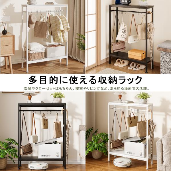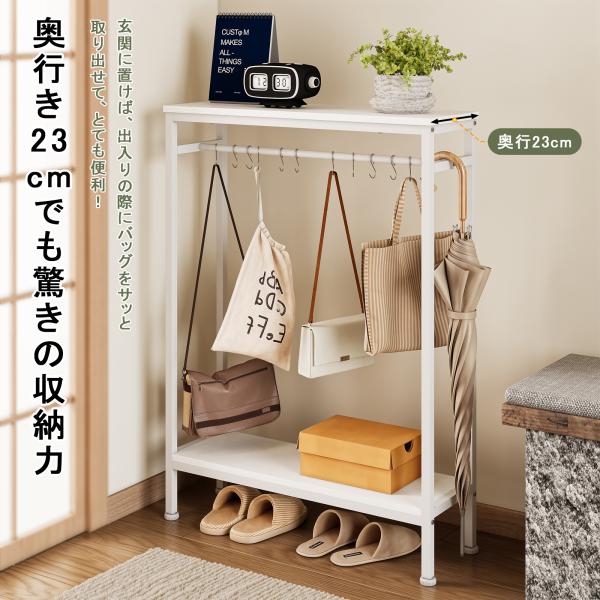 2段棚 バッグ 収納 カバン掛け ハンガーラック スリム マルチラック 子供用ラック 頑丈 ランドセルラック 12点S字フック付き 鞄収納 鞄置き スチール 玄関ラック