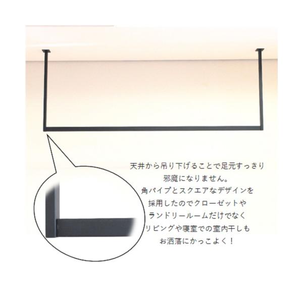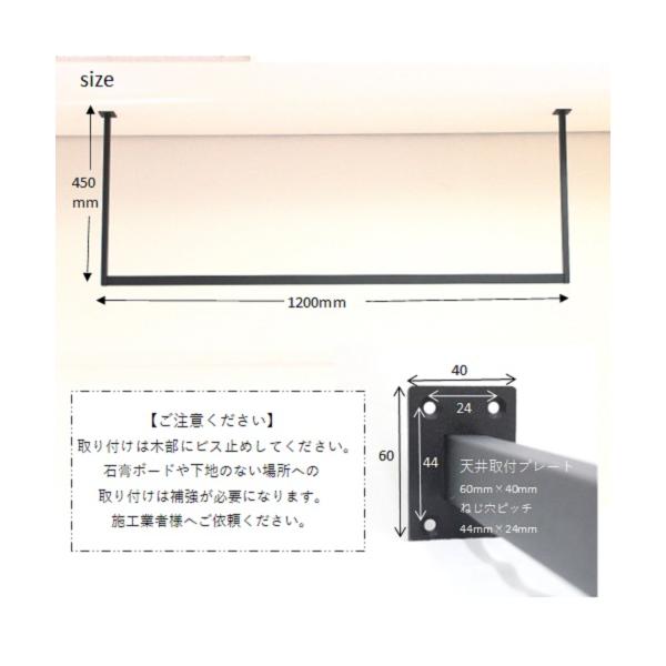 ハンガーバー コの字 W1200H450 アイアンバー ハンガーパイプ 物干し ランドリールーム 天井 吊り下げ 施主支給 室内干し 観葉植物 玄関 クローク 黒 16-BLACK
