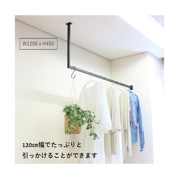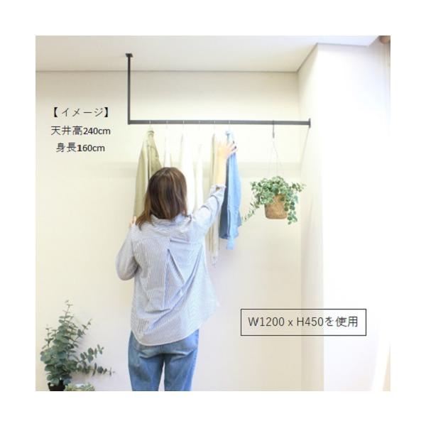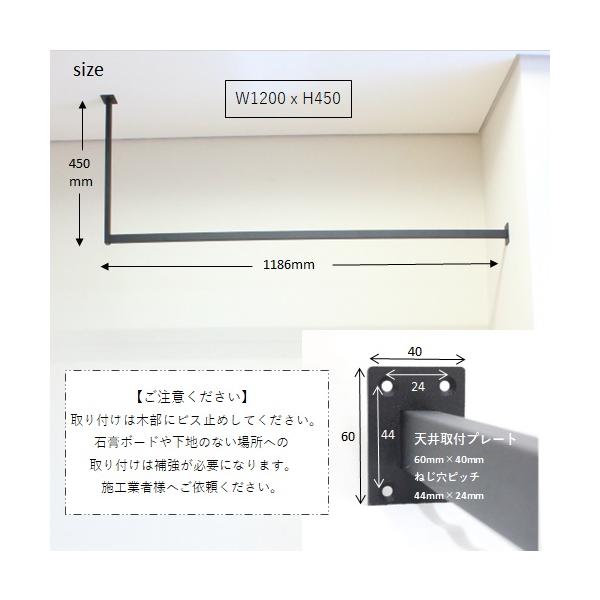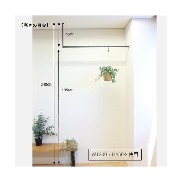 ハンガーバーL型 W1200H450 アイアンバー ハンガーパイプ 物干し ランドリールーム 天井 吊り下げ 施主支給 室内干し 観葉植物 玄関 クローク 黒 35-BLACK