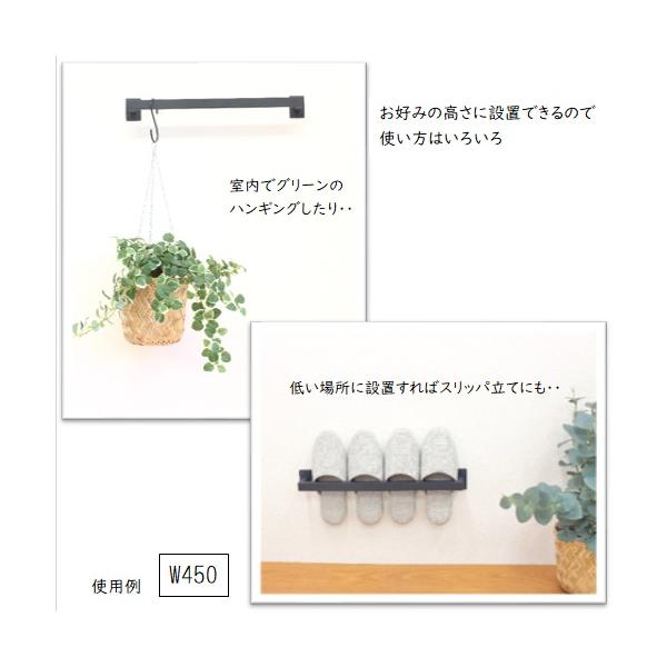 ウォールバーW450H70 ハンガーバー 壁付け アイアンバー ハンガー クローゼット 室内干し 玄関 観葉植物 吊り下げ 施主支給 ランドリールーム 黒 58-BLACK