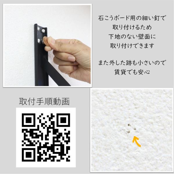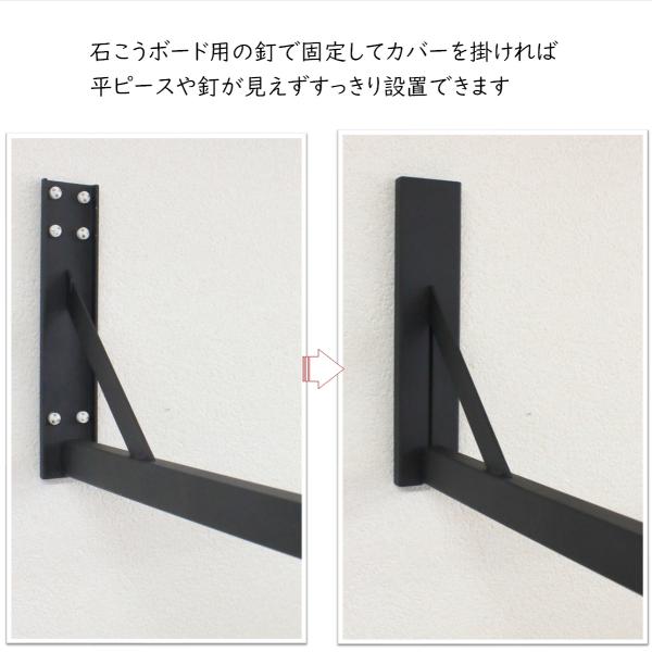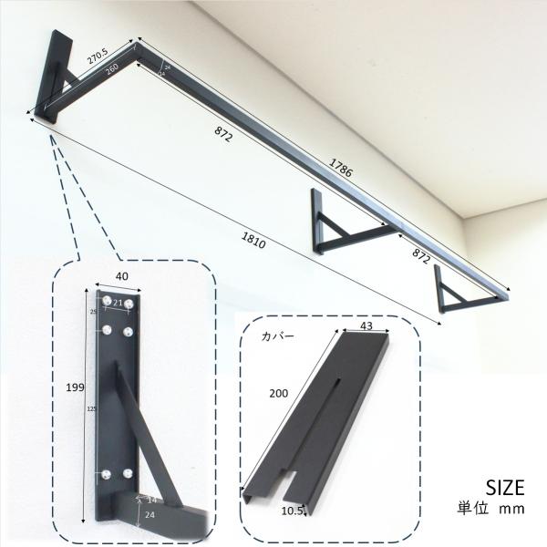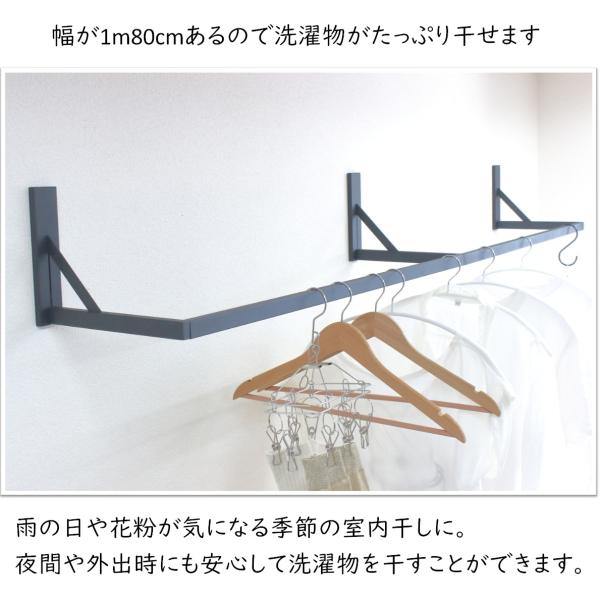 壁付物干しハンガーW1800 物干しハンガー アイアンバー ハンガー 石膏ボード壁 ランドリーバー 室内干し リビング 窓際 クローゼット 夜干し 180cm 黒 72-BLACK