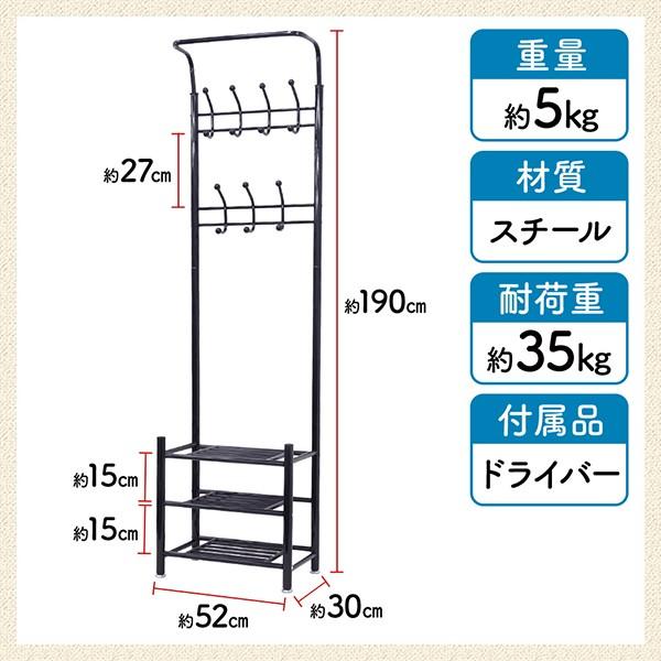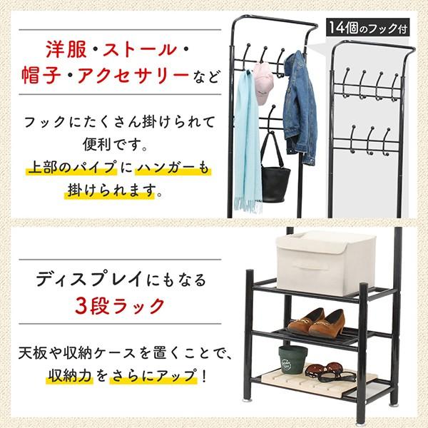 ハンガーラック 頑丈 おしゃれ スリム 50 3段 棚付き パイプハンガー ハンガーポール フック ワードロープ 北欧 アイアン 安い 幅52cm 省スペース