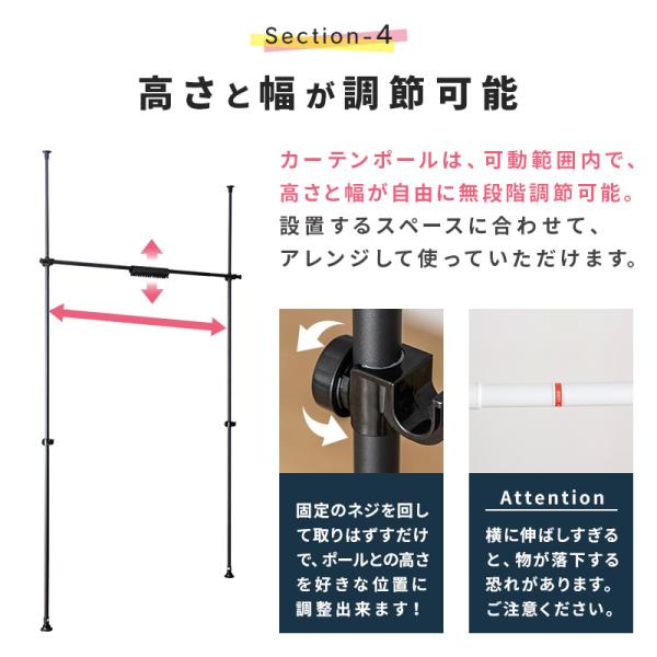 突っ張りカーテンポール 室内 突っ張り棒 パーテーション 高さ調節可能 ハンガーラック 頑丈 突っ張り棒 カーテンポール カーテンレール