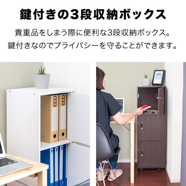 収納ラック 3段 収納ボックス 書類 書庫 ファイル収納 キャビネット 鍵付き 35x30x107cm ロッカー 本棚 扉 カラーボックス キャスター 会社 1年保証 送料無料