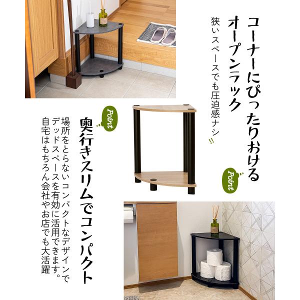2段コーナーラック オープンシェルフ マルチラック 多目的ラック 収納棚 スリム 脚付き オープン棚 3カラー コンパクト