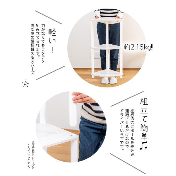 3段コーナーラック オープンシェルフ マルチラック 多目的ラック 収納棚 脚付き 薄型タイプ 4カラー