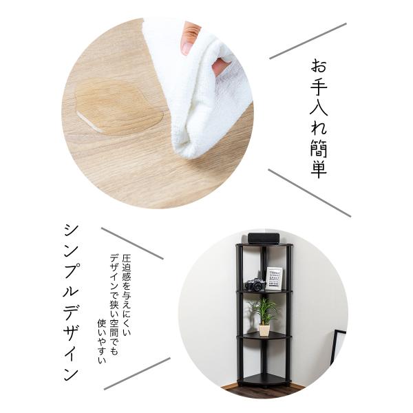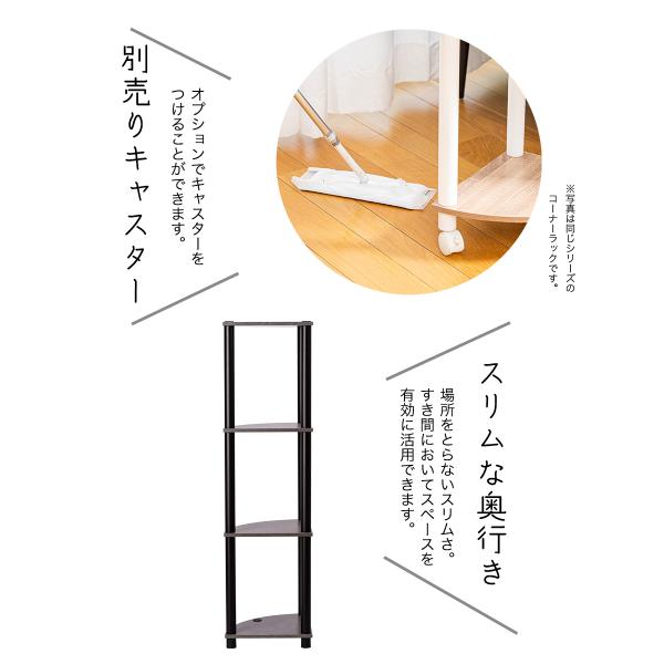 4段コーナーラック オープンシェルフ マルチラック 多目的ラック 収納棚 脚付き 薄型タイプ 3カラー コンパクト