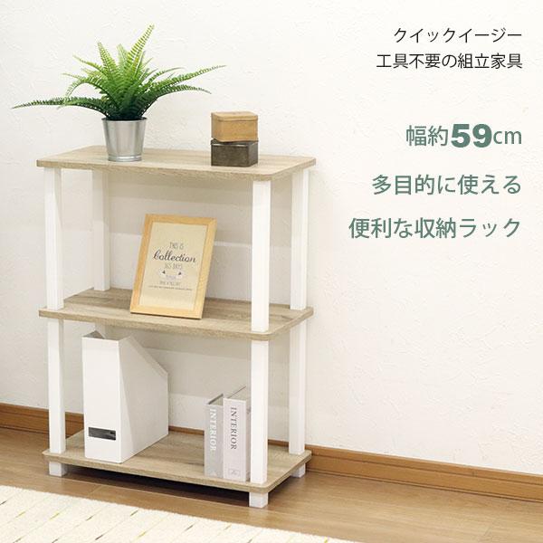 収納ラック 3段 オープンラック3段 工具不要 簡単組立 幅60cm(59cm) 奥行30cm(29.7cm) 高さ76.9cm おしゃれ 棚 キッチンラック 調味料トイレ収納 QSVP-2 NQ-3