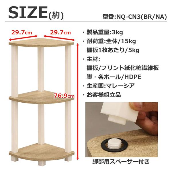 コーナーラック 棚 スリム 3段 おしゃれ トイレ リビング 収納 木製 3段 NQ-CN3