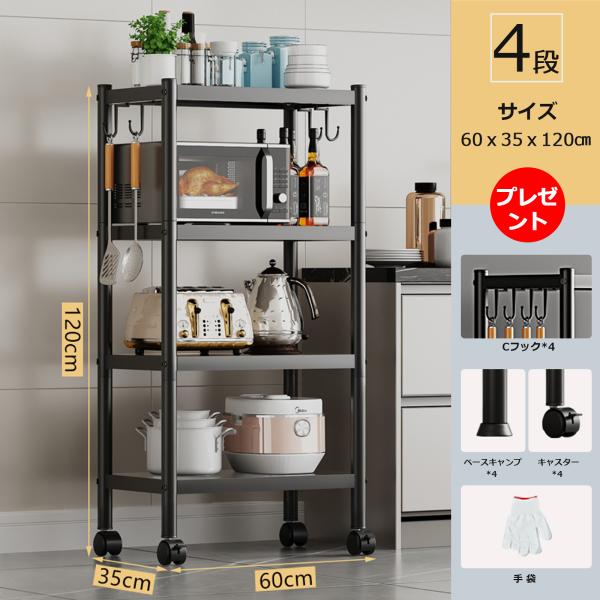 リニューアル発売 スチールラック 4段 幅60 キャスター付き 120cm キッチンラック 頑丈 オープンラック 高さ調整可能 ウォールシェルフ 棚 キッチンワゴン 爆買