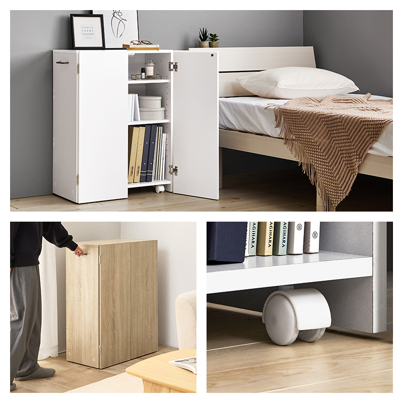 本棚 扉付き スリム 多機能 おしゃれ ラック 棚 キャスター コミックラック 隙間収納 隠せる 収納 漫画 推し活 隠す収納 薄型 可動棚 白