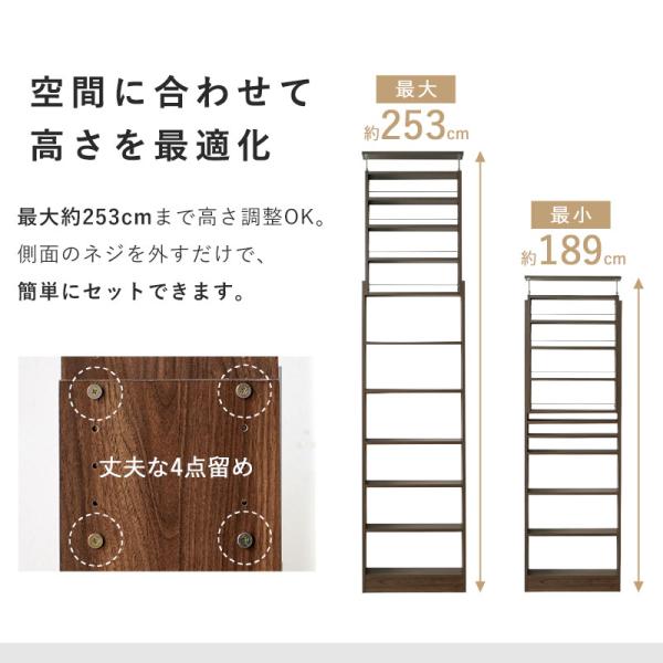 本棚 突っ張り スリム 大容量 幅60cm 幅45cm 奥行26cm 奥行19cm おしゃれ 耐震 壁面収納 薄型 木製 天井 つっぱり 固定 壁 連結 棚 オープンラック