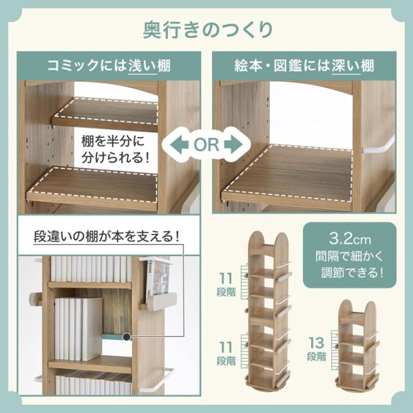 回転式本棚 本棚 収納 回転 絵本棚 ディスプレイ おしゃれ 大容量 木目調 回転本棚 回転ラック 絵本ラック 本 絵本 漫画 ナチュラルテイスト ランドセルラック
