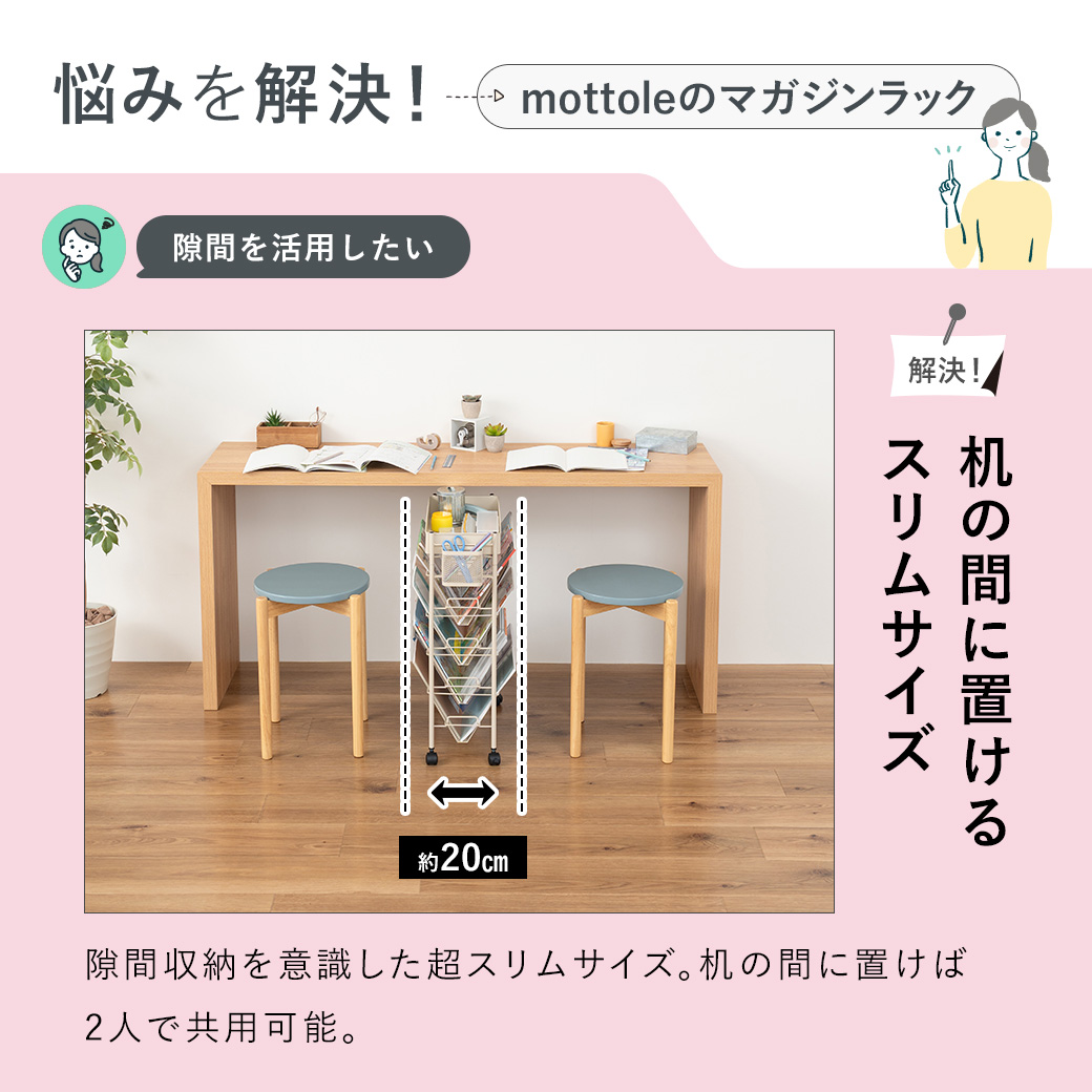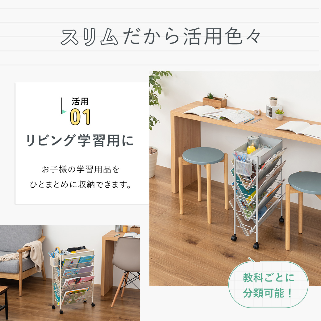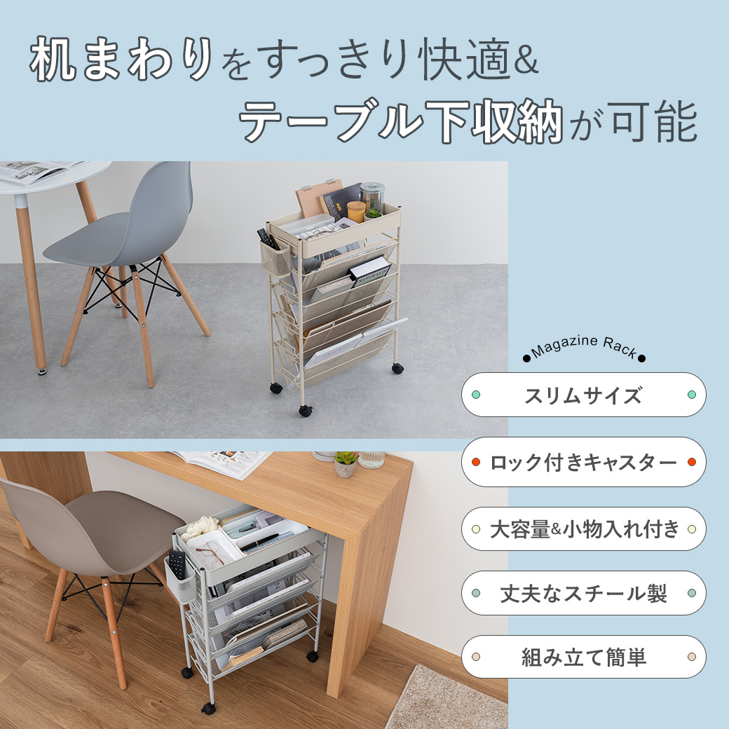 マガジンラック スリム キャスター 机下 デスク下 大容量 4段 薄型 スチール サイドワゴン 隙間収納 絵本 雑誌 教科書 書類 テキスト おしゃれ 北欧 MTL-S035