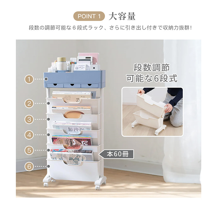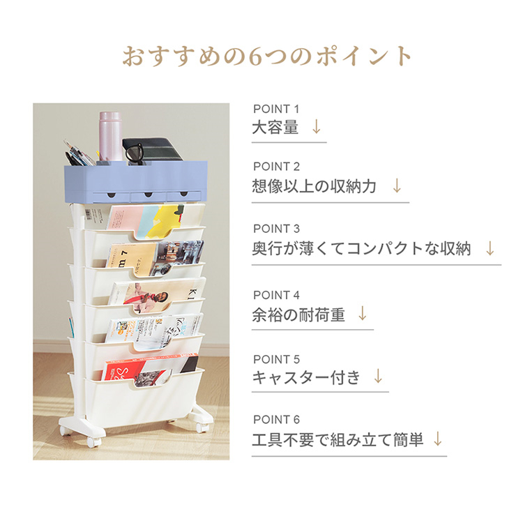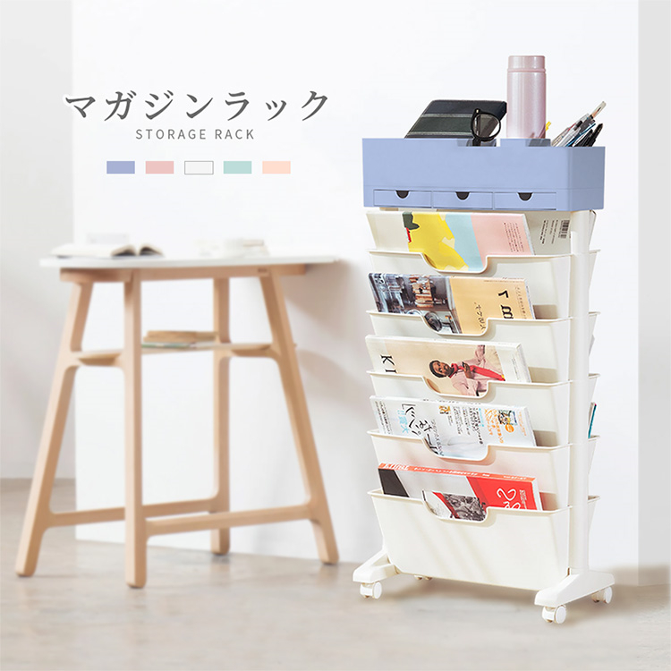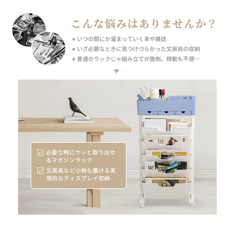 マガジンラック デスクワゴン ファイルワゴン 6段 キャスター付き コンパクト 耐荷重 組み立て簡単 大容量 収納棚 収納ラック 本棚 北欧 子供部屋 オフィス
