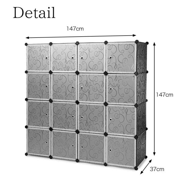 組み立てアレンジボックス 16個 収納ボックス 魔法の収納ボックス 4段4列16扉 ブラック/ホワイト 家具 タンス 衣装ケース