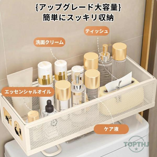 トイレ収納 小物置き 棚 収納 シンプル スペース 収納ラック 便器の上収納 トイレ用品 トイレ 取付け簡単 スマホ 掃除用品 ホワイト ブラック 北欧 穴あけない
