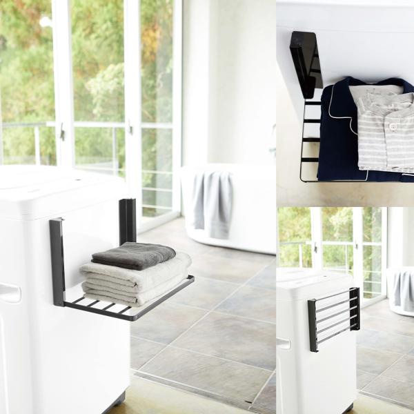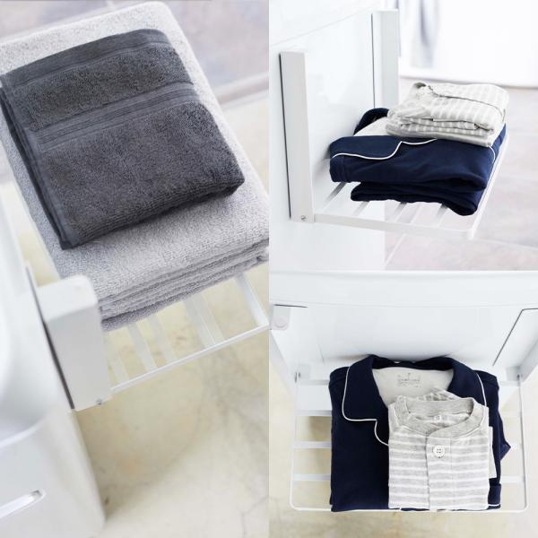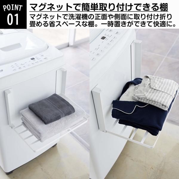 山崎実業 tower 洗濯機横 マグネット 折り畳み棚 タワー 洗濯機ラック 収納 タオルラック バスタオル