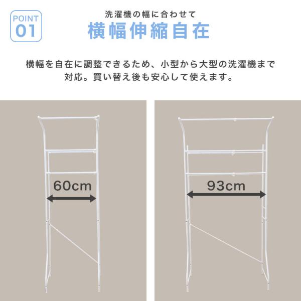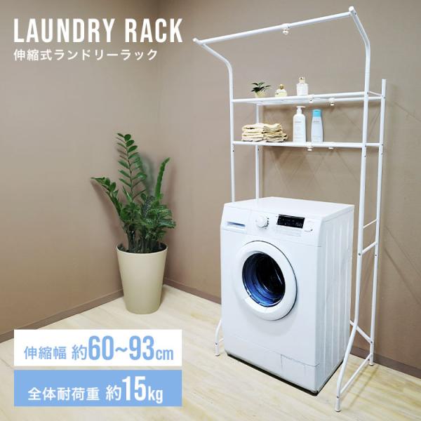 洗濯機ラック ランドリーラック 収納 幅60cm×93cm 伸縮可能 耐荷重15kg ぐらつき防止 タオル掛け付き 洗濯機 棚 スリム 伸縮 ランドリー収納 洗濯機棚