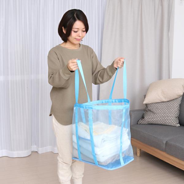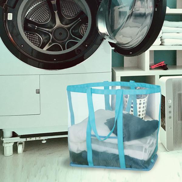 アストロ公式 製品保証付き 在庫処分特価 ランドリーバッグ ライトブルー メッシュ素材 洗濯カゴ 洗濯物入れ コインランドリー カバン アストロ 820-30