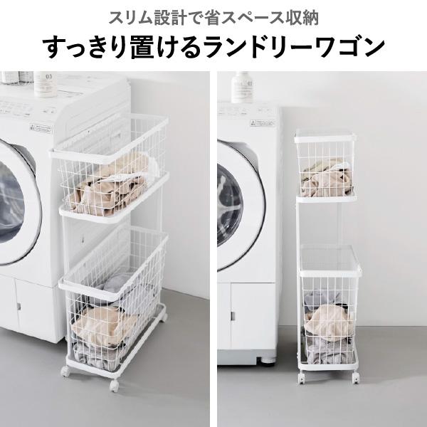 ランドリーバスケット 2段 洗濯カゴ 脱衣所 おしゃれ 省スペース ランドリー収納 バスグッズ 北欧 山崎実業 ランドリーワゴン+バスケット タワー スリム tower