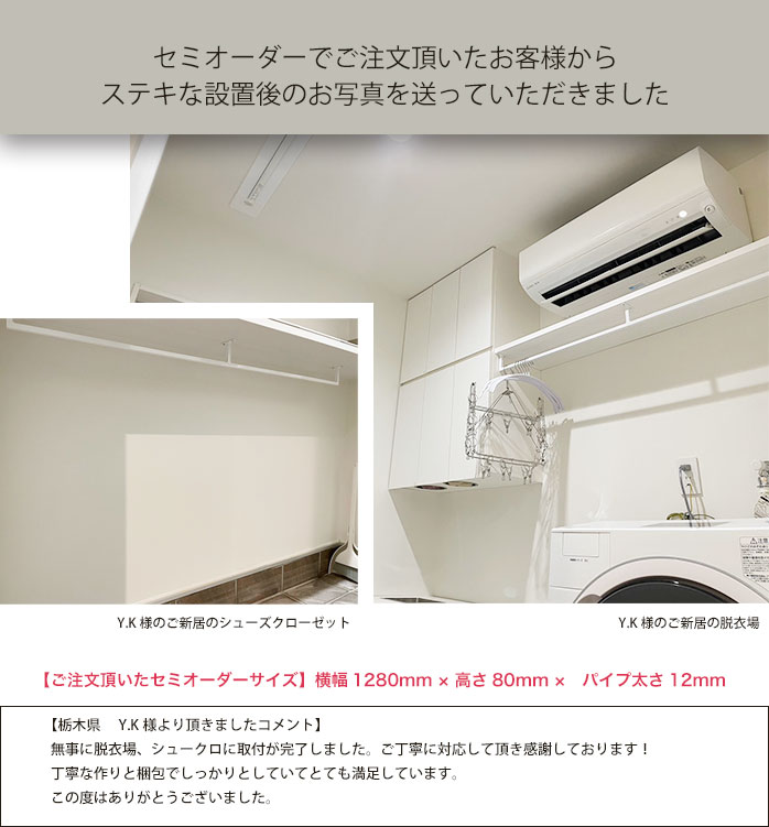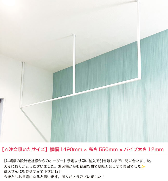 【 E字型3 】【 10mm刻みでサイズが選べる天井アイアンバー 】【 幅1510~2000mm 】オーダー 室内 物干し バー 黒 ホワイト ランドリー 洗濯干し 受注生産 日本製
