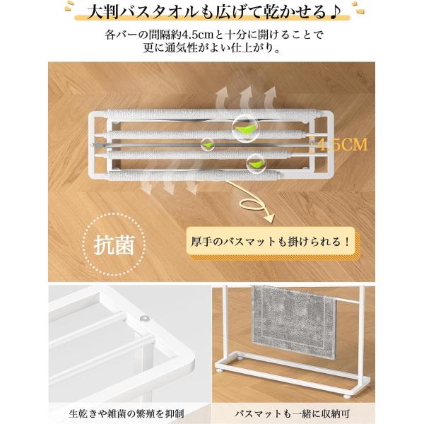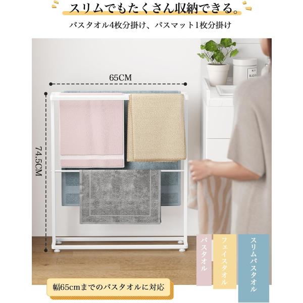 バスタオル掛け バスタオルハンガー 約W65XD18XH74.5cm 掛けやすい 大判サイズも干せる 薄型 タオルラック 乾きやすい 物干し 大判 隙間収納 洗面所収納 置き型