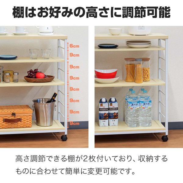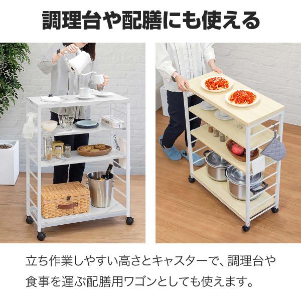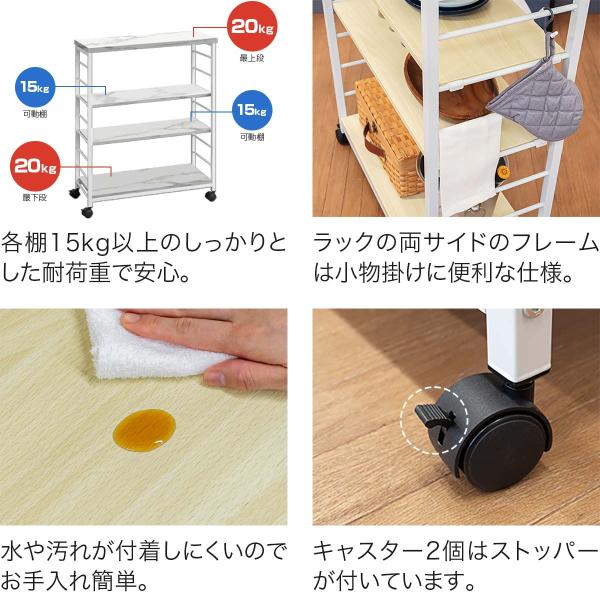 キッチンワゴン キャスター付き 天板付き スリム 高さ調節 4段 幅70cm×奥行30cm 木目調 隙間収納 キッチンラック キッチン収納 ラック 1年保証 送料無料