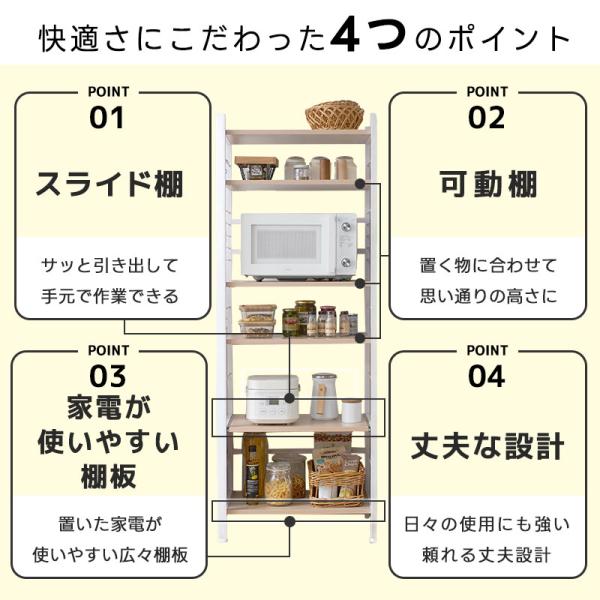 レンジ台 キッチン 棚 約幅60 おしゃれ 食器棚 6段 レンジラック キッチンラック ラック 大型レンジ対応 スライド棚 高さ169cm 収納家具 レンジ レンジボード