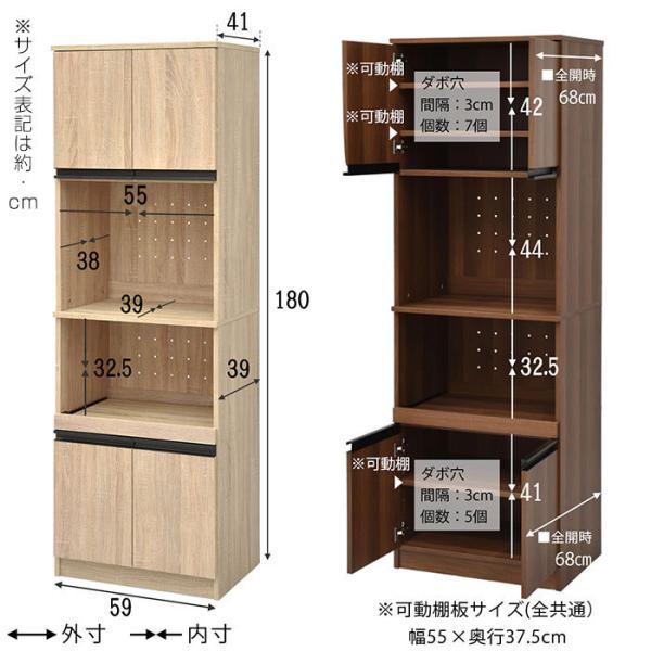 レンジボード 食器棚 高さ180cm レンジ台 レンジラック 収納 キッチンボード カップボード キッチンラック 幅59 スライド キッチン収納棚